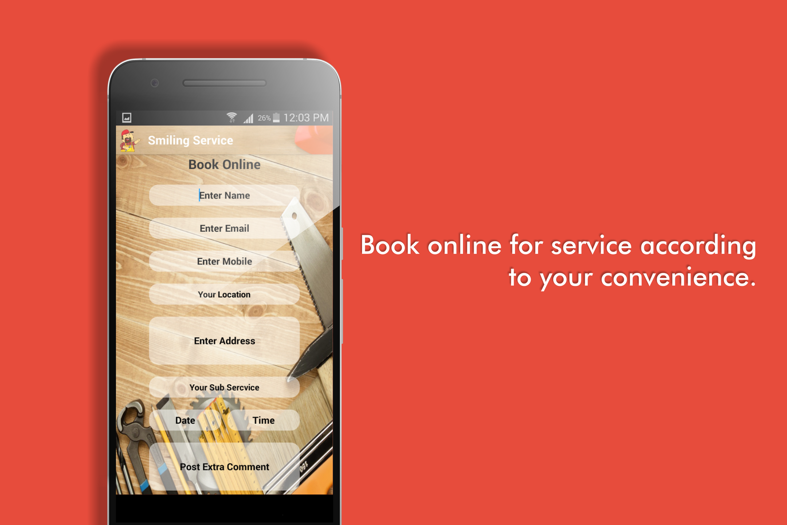 With Smiling service app you can book services from qualified, background verified professionals near you for all your home needs from anywhere, anytime. Home Cleaning | Electrical Installation & Repair | Plumbing | In-home Fitness | Pest Control | Carpenter Services| Painting & More.