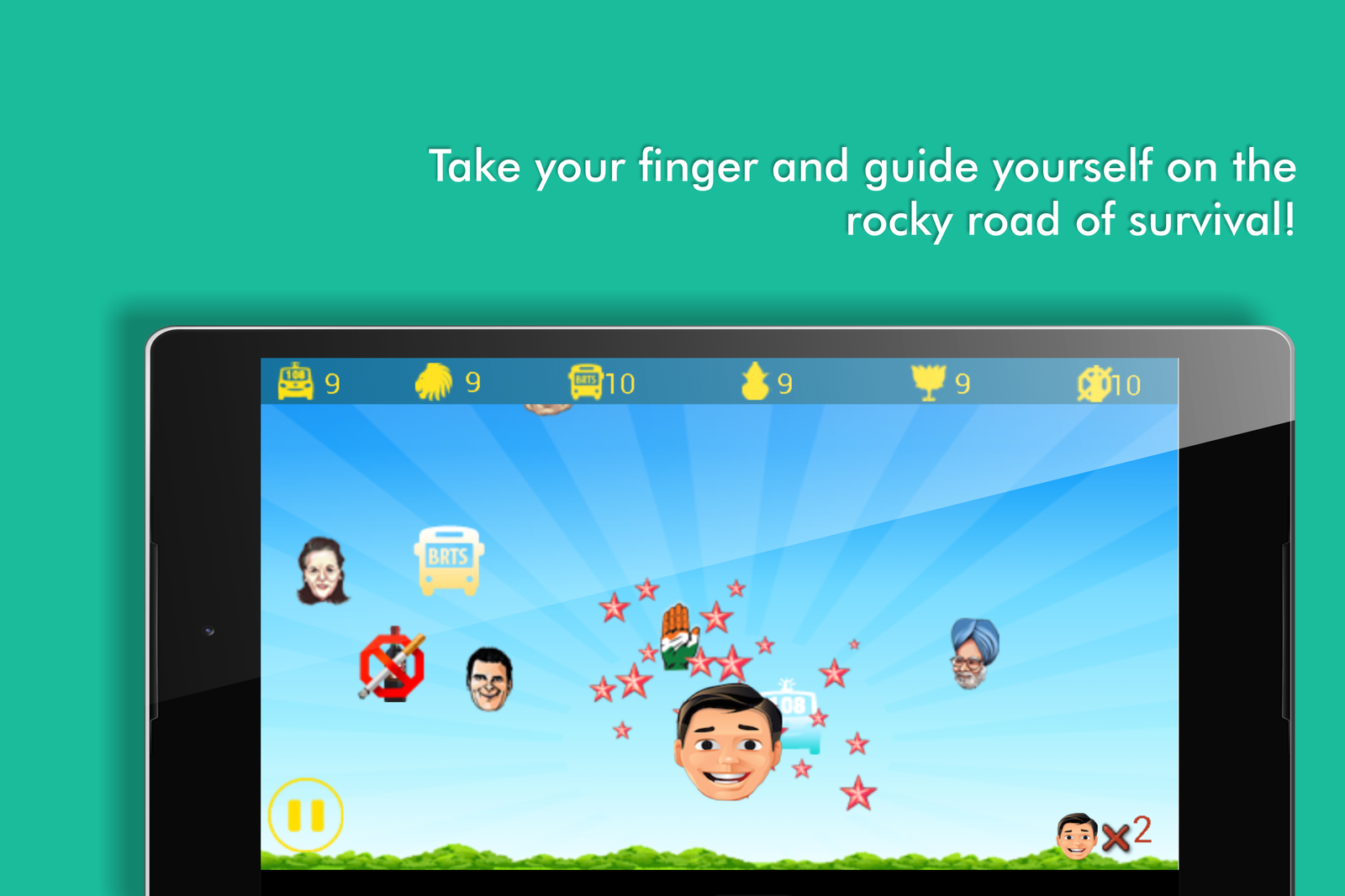 Super NaMo Game is a funny and addictive casual game for users. Take your finger and guide yourself on the rocky road of survival! Pick the positive elements of growth & development to move forward on the way. Escape from anti-development elements and corruptions to overcome the obstacles.